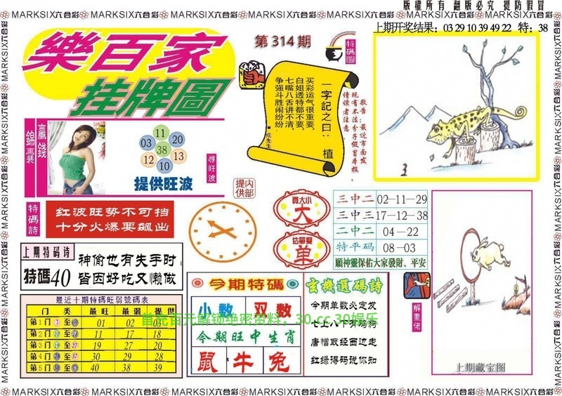 315期:六合三怪/内部平特诀/独家六合玄机/六合对诀/波色输尽光